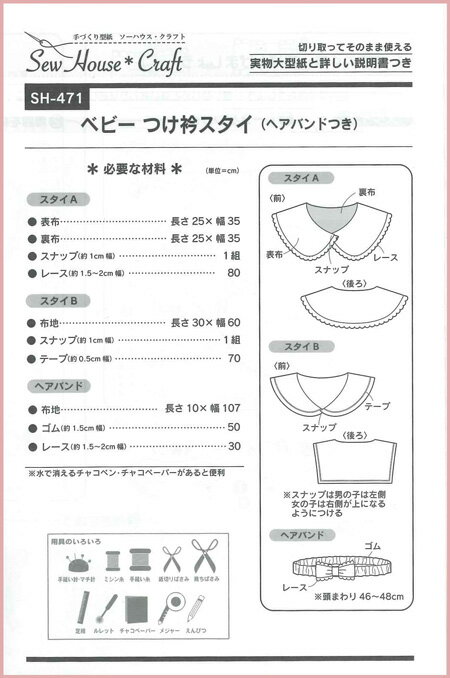 切り取ってそのまま使える 実物大型紙と説明書つき
