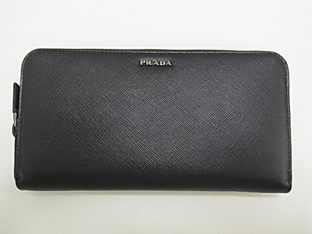【送料無料】プラダ PRADA 財布 2ML317 ラウンドファスナー 黒 革 男女兼用【中古】